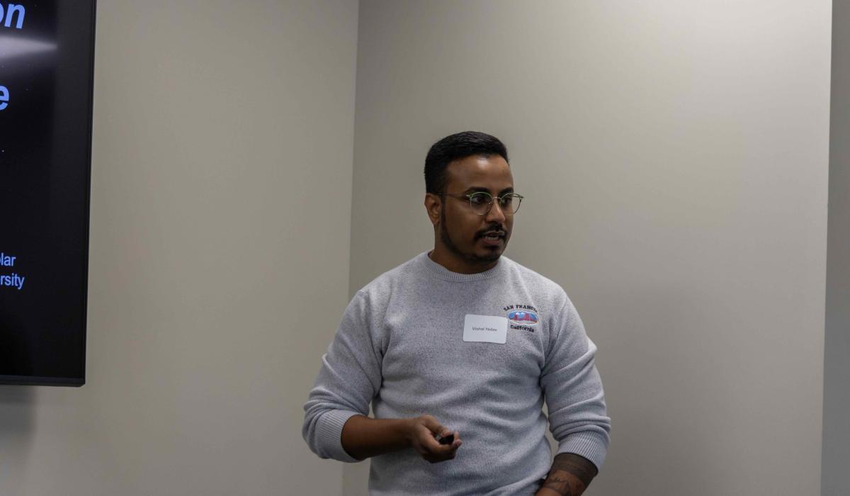 Vibhav Pal, a graduate student in chemistry, won the award for best poster presentation, presenting “Interparticle Crosslinked Ion-responsive Microgels for 3D and 4D (Bio)printing Applications.”
